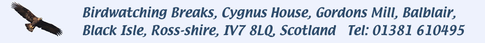 Basically this was a drop off and return day back to Inverness. The weather was dreadful with pouring rain and strong winds which would have made birding almost impossible. All in all a very enjoying weeks birding in Scotland.